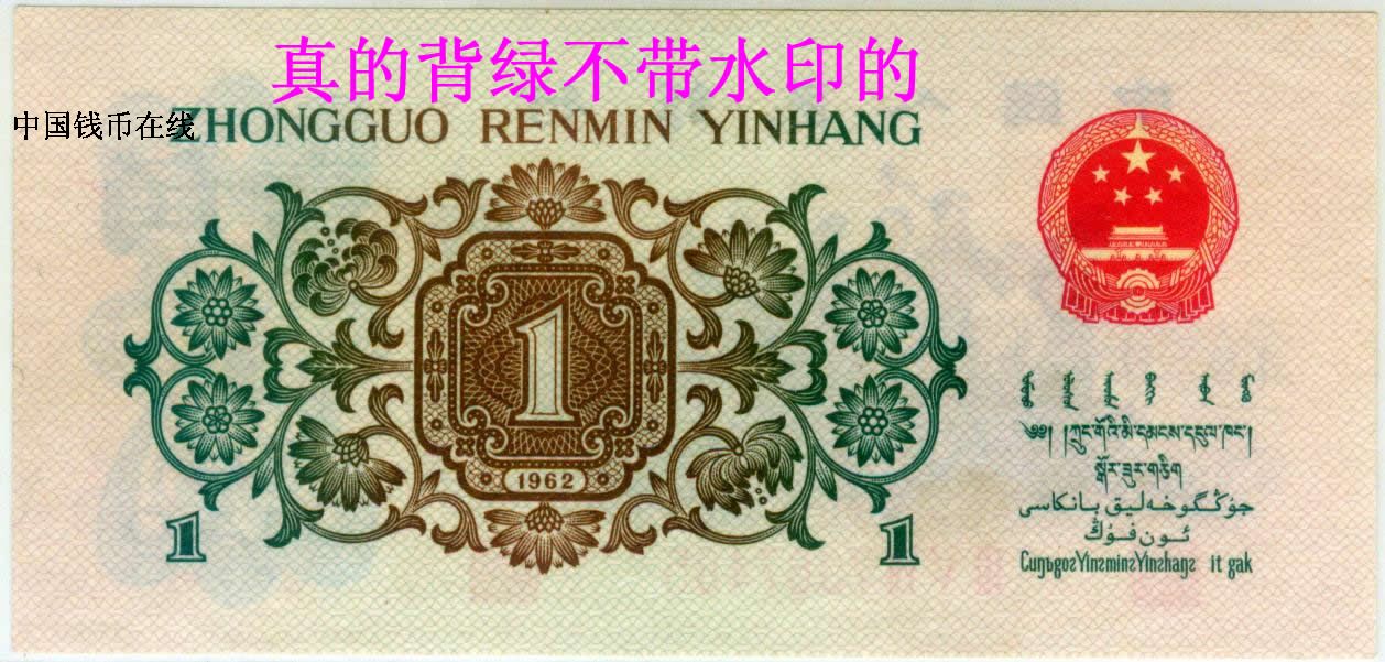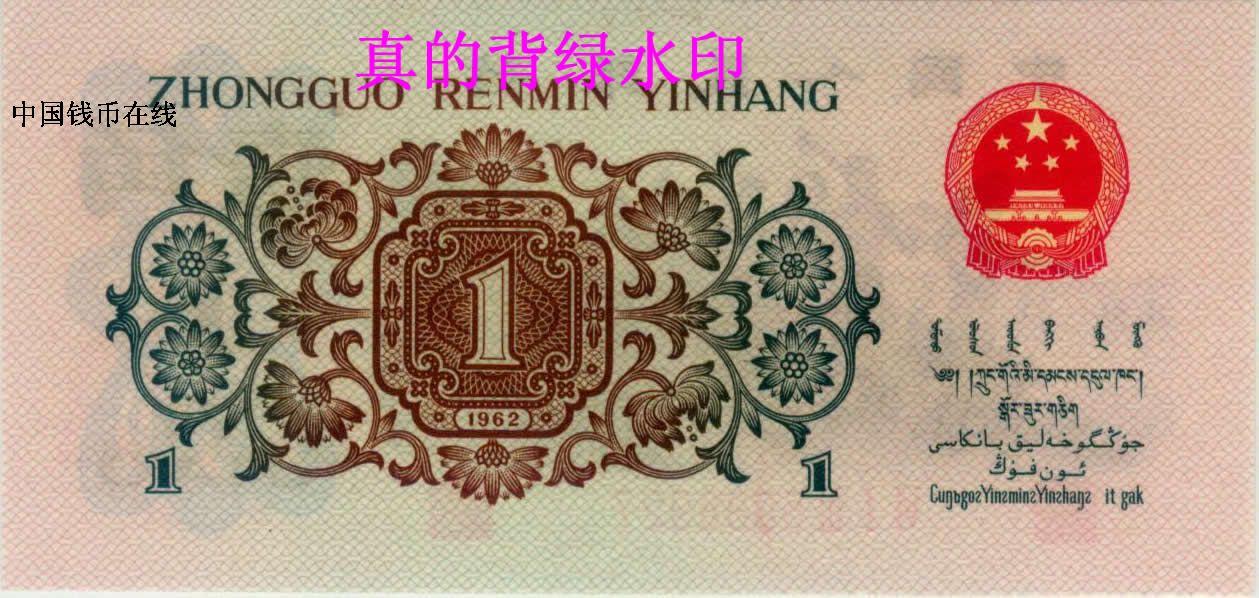 第三套人民币制作精美,过去在2000年以前从未发现过赝品。但近年来,造假者采用高科技手法将第三套人民币中的1962年“背绿水印”壹角(现市价为3500元)真的“背绿水印”是带水印的雕版印刷,假的也是带水印的而且也是雕版印刷的。1962年壹角的“背绿水印”真的是凹凸感很强底文很清晰纸张带有纸胶感、假的背绿是用真的1962年的“凸版水印”壹角水印改制的!而假的“背绿水印”纸胶被药水洗掉了没有纸胶的油润性、假“背绿水印”的正面图案有被洗过的痕迹颜色不正!大家要购买时要以1962年的“凸版水印”壹角的正面为标准来看“背绿水印”的正面是否有过被“药水洗过”的痕迹!假“背绿水印”的背面的底文是后印上去的印质很是粗糙的!另一种假的“背绿水印”就是用真的背绿改制的,他们将普通的“背绿”纸币在沸水中泡开,再将电脑复制的空心五星图形剪下,放进夹层中,“合成”后阴干夹平。集币爱好者除仔细观察水印是否自然外,还应检查纸边上有无“合成”痕迹。