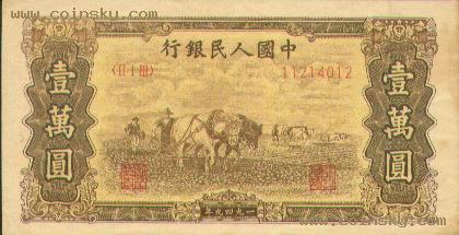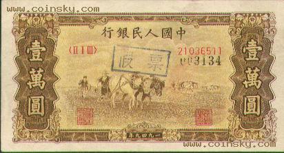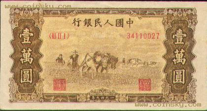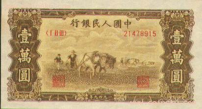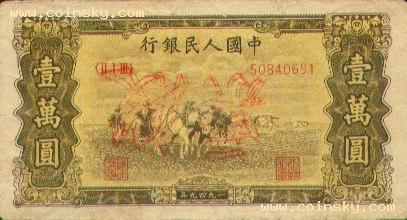 [组图]第一版人民币1万元双马耕地真假对照图         ★★★