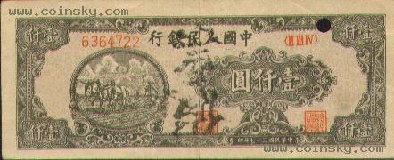 第一版人民币100元耕地工…