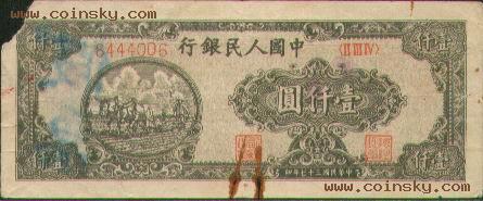 第一版人民币壹仟圆(六…