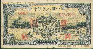 第一版人民币200元颐和园…