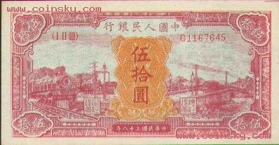第一版人民币50元红火车大桥真假对照图