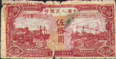 第一版人民币100元耕地工…
