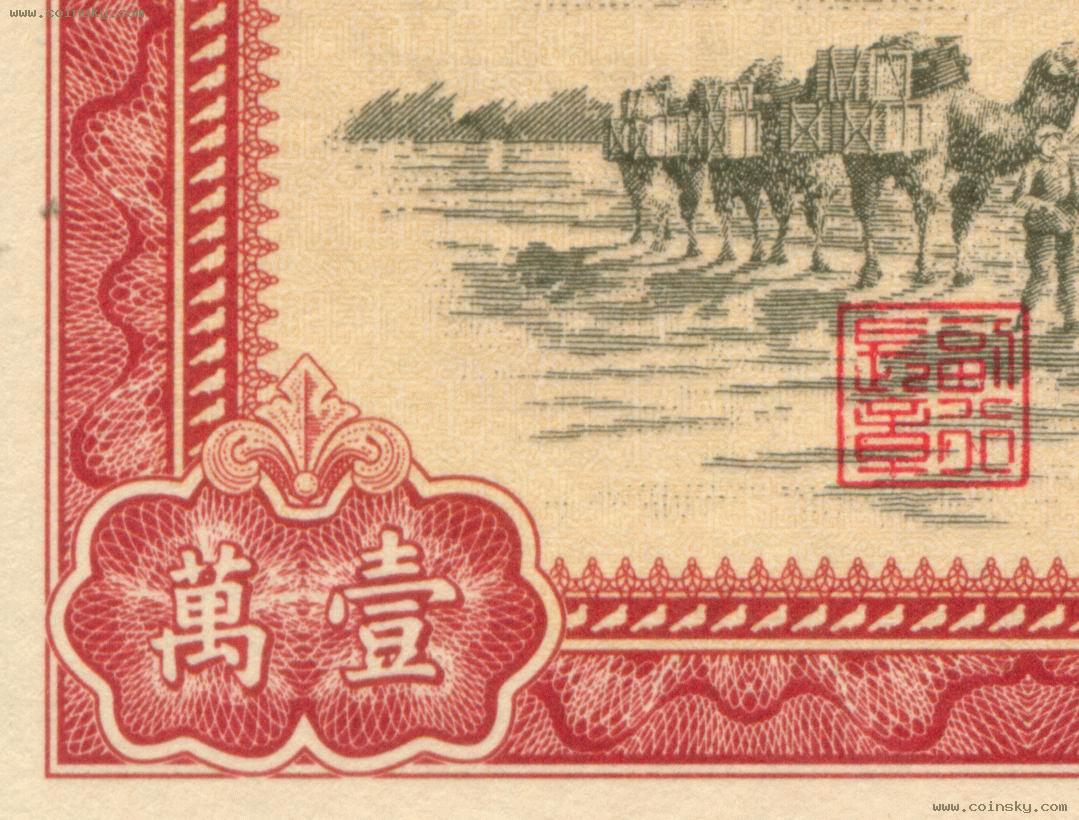 [组图]第一版人民币100000元骆驼队真假对照图(新假)         ★★★
