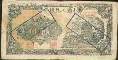 第一版人民币100元蓝色北…
