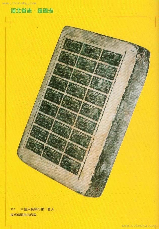 摘录1997年高士敏、万国庆二位先生主编<河北省志.金融志>里面的一张图:中国人民银行第一套人民币伍圆券小帆船的石印版,一版(一大张)有3×9=27小张。提供给大家参考!