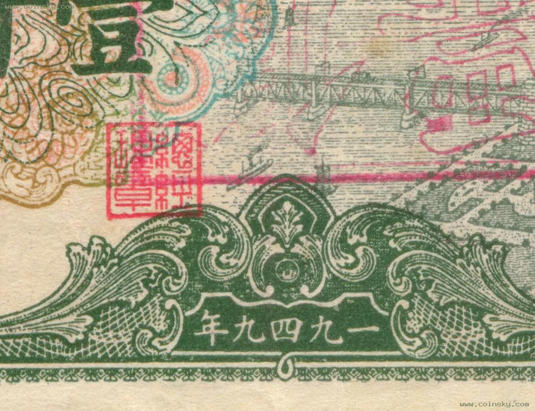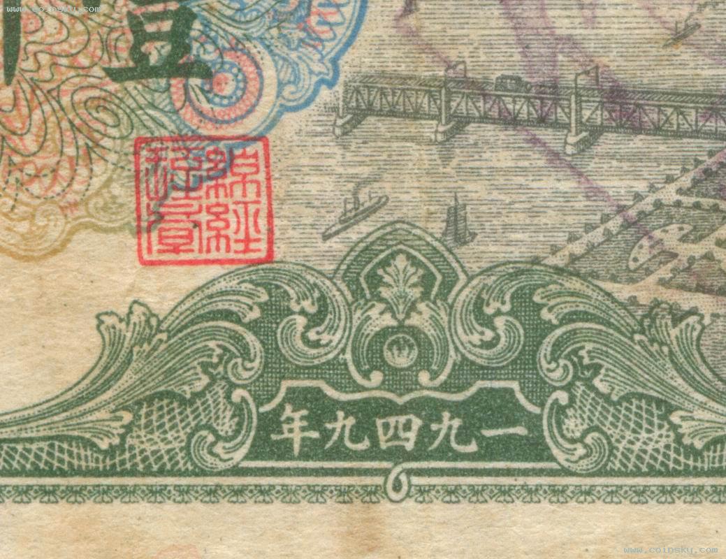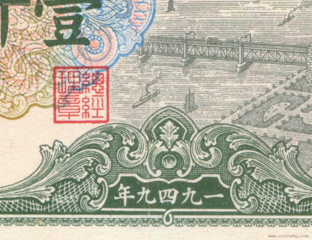 [组图]第一版人民币1000元钱塘江桥真假对照图(新假)         ★★★