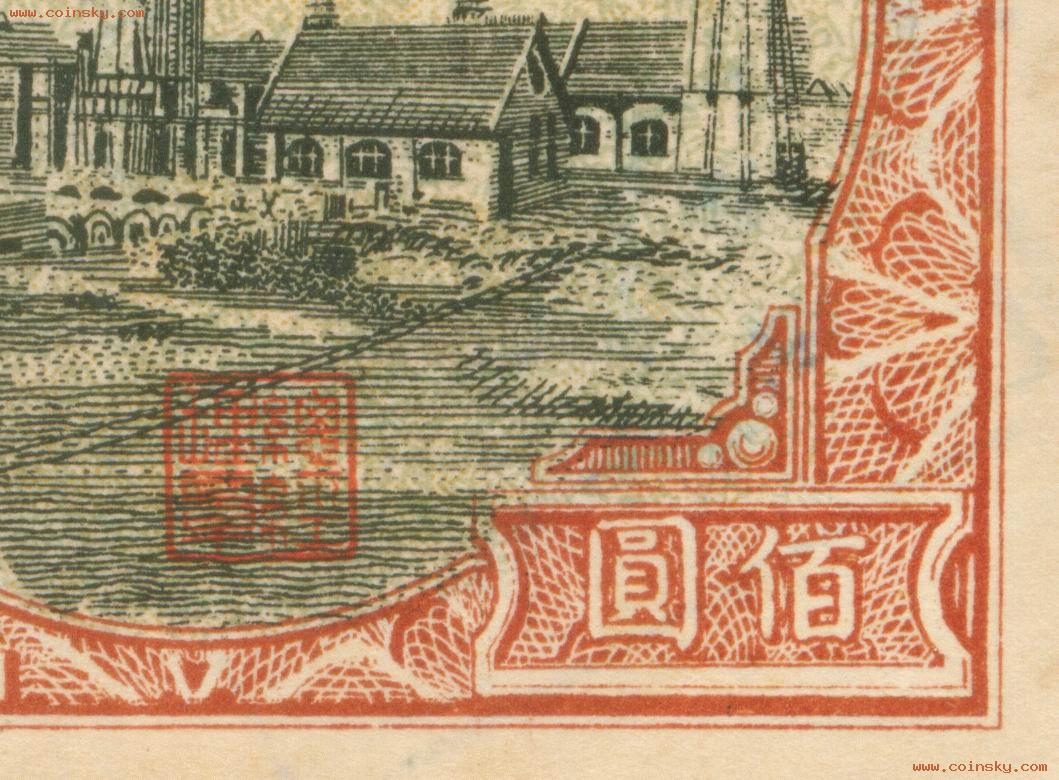 第一版人民币100元耕地工厂真假对照图(新假)