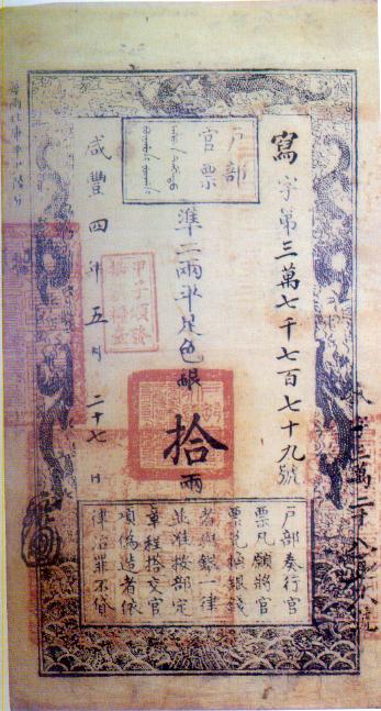 [图文]咸丰四年(1854年)户部官票拾两         ★★★