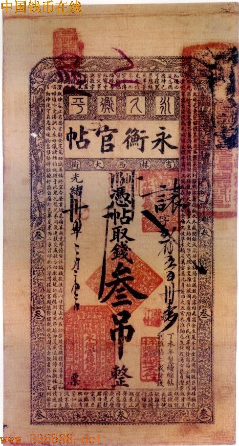 [组图]光绪34年吉林永衡官帖  3吊         ★★★