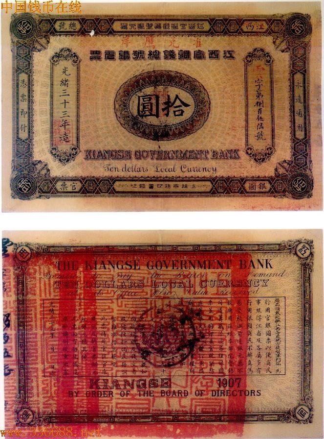 [图文]光绪33年江西官钱总号   10元         ★★★