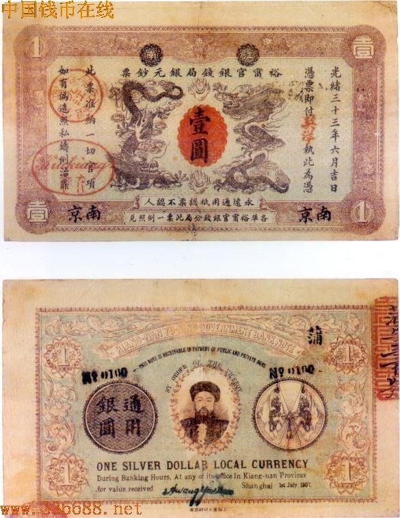 [图文]光绪33年江南裕宁官银钱局   1元南京         ★★★