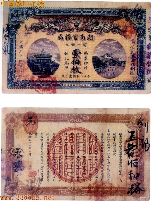[图文]光绪34年湖南官钱局   100枚         ★★★