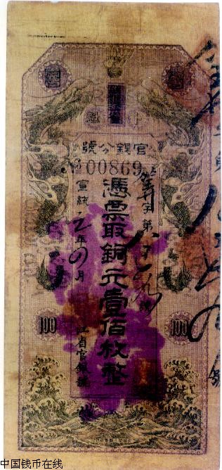 [图文]宣统3年黑龙江官银分号   100枚         ★★★