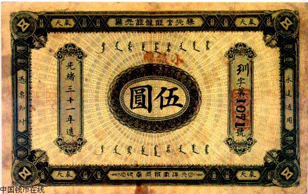 [图文]光绪31年奉天官银号银元票  5元         ★★★