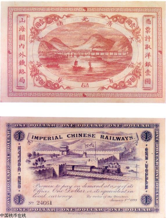 ·清末兴起「自强运动」,模仿西法,以图国富,之后对于铁路的建设极为热心.光绪22年(1898年)发行洋银1元、5元、10元3种纸币.