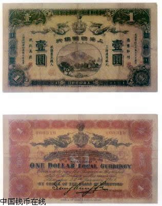 ·光绪34年(1908年)8月,浙江宁波仕绅聚资创办「四明银行」,宣统元年(1909年),清政府度支部批准发行银元票,分1元、2元、5元、10元四种.票面中央为「四明山景」.票面、票背上端均有双龙迎向「聚宝盆」图,版式可分「上海商务印书馆」及「上海集成公司」二种.