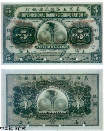 ·光绪27年(1901年),美商花旗银行获得中国粤汉铁路的建筑权,并在上海设立分行,独家办理美国对华贸易、汇兑等业务,并取得发行货币的特权.光绪31年(1905年)在上海发行5元、10元、50元、100元等面值纸币.