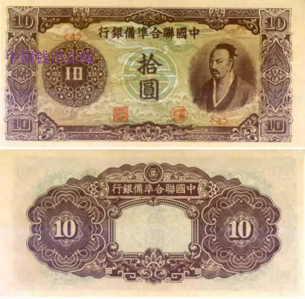 推荐日伪纸币[联合准备银行][组图]联合准备银行10圆浅花文刘扬11-30