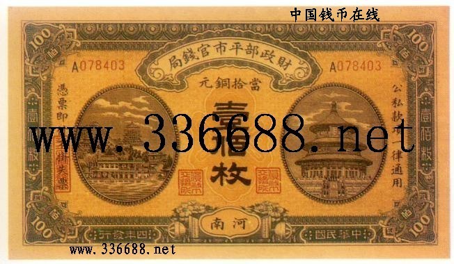 [图文]民国4年铜元票   100枚河南         ★★★