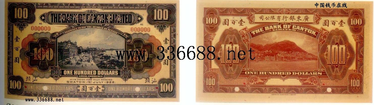 普通商业银行[广东银行有限公司][图文]民国11年银元票  100元汕头刘扬12-16