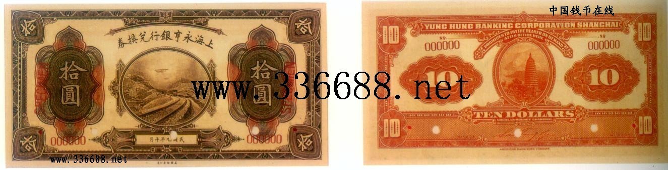 普通商业银行[上海永亨银行][图文]民国9年银元票   10元试模票刘扬12-16