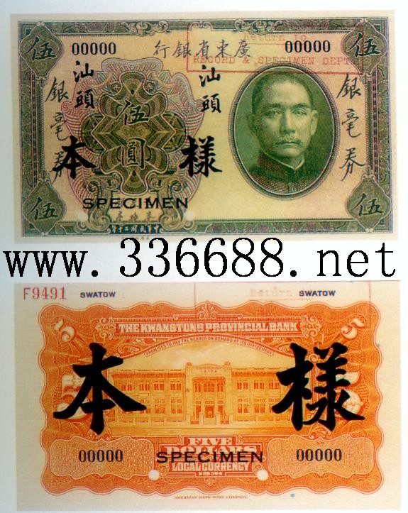 广东省银行民国20年(1931)银毫券 5元