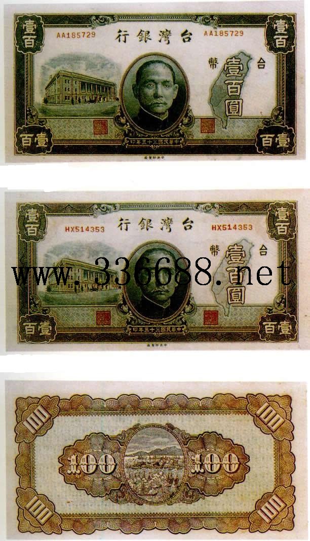[组图]民国35年(1946)旧台币   100元         ★★★