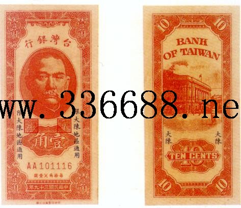 [组图]民国39年(1950)新台币大陈用   1角         ★★★