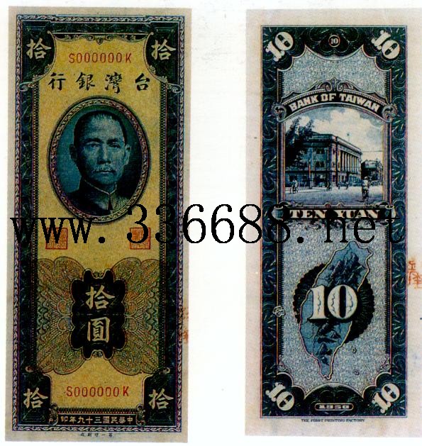 [组图]民国39年(1950)新台币大陈用   10元         ★★★