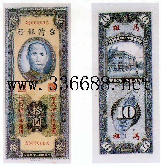 [组图]民国39年(1950)新台币马祖用   10元中央厂         ★★★