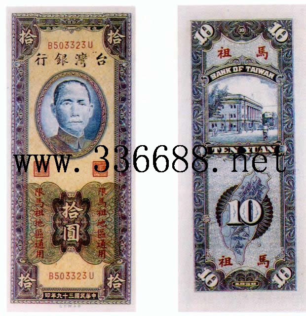 [组图]民国39年(1950)新台币马祖用   10元中央厂         ★★★