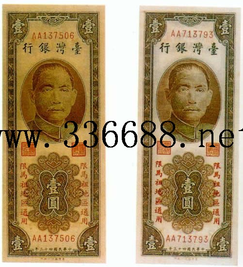 [组图]民国43年(1954)新台币马祖用   1元         ★★★