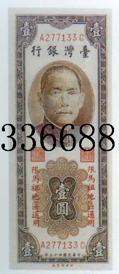 [组图]民国43年(1954)新台币马祖用   1元中央厂         ★★★