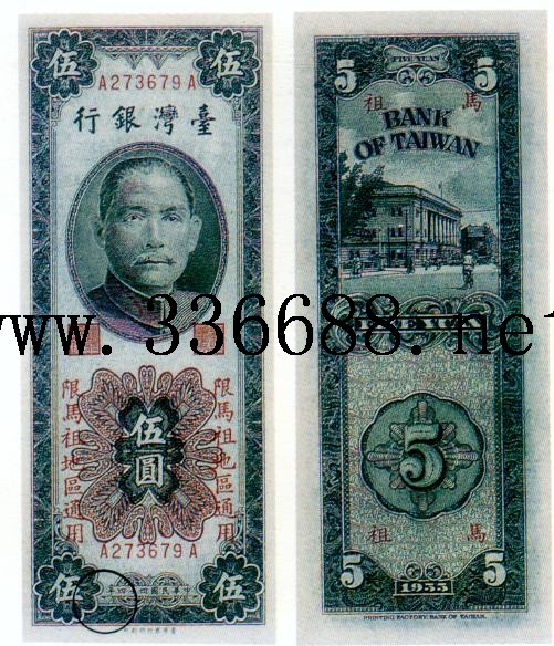 [组图]民国44年(1955)新台币马祖用   5元         ★★★