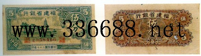 [图文]福建省银行民国27年(1938)银元票   5分         ★★★