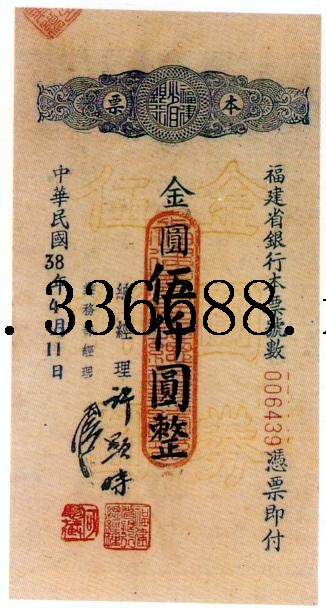 [图文]福建省银行民国38年(1949)金圆券本票   5千元         ★★★