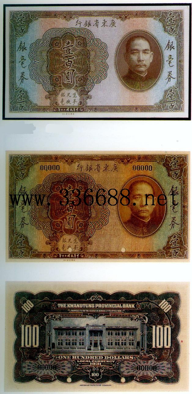 [图文]广东省银行民国20年(1931)银毫券   100元         ★★★