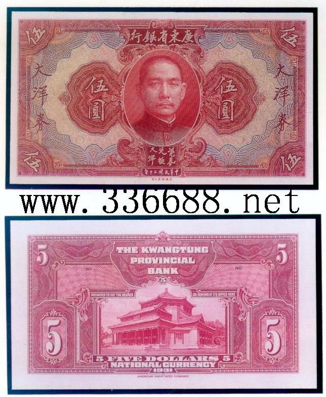 [组图]广东省银行民国20年(1931)省毫券   5元         ★★★