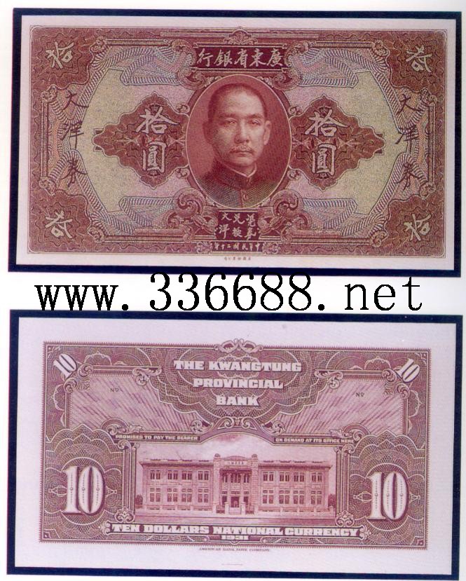 [图文]广东省银行民国20年(1931)大洋券   10元         ★★★