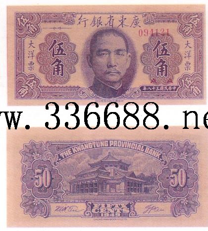 [图文]广东省银行民国38年(1949)大洋票     5角         ★★★