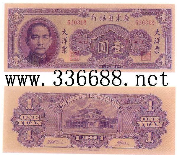 [图文]广东省银行民国38年(1949)大洋票     1元         ★★★
