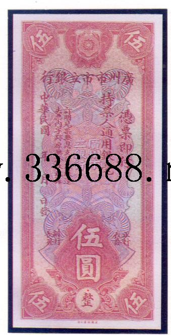 [组图]广东市市立银行民国18--21年(1929--1932)银毫券   5元         ★★★