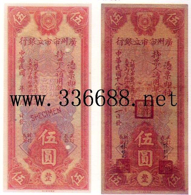 [组图]广东市市立银行民国18--21年(1929--1932)银毫券   5元         ★★★