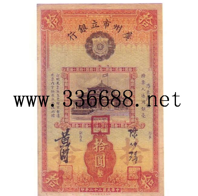[组图]广东市市立银行民国22年(1933)银毫辅币券   10元         ★★★