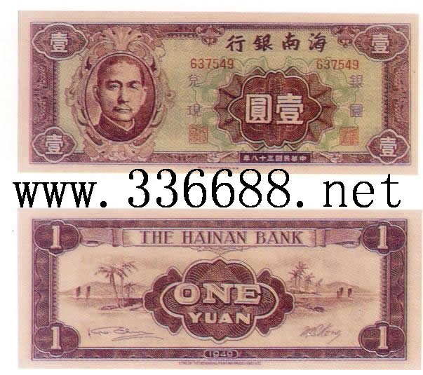 [图文]海南银行民国38年(1949)银元票   1元         ★★★