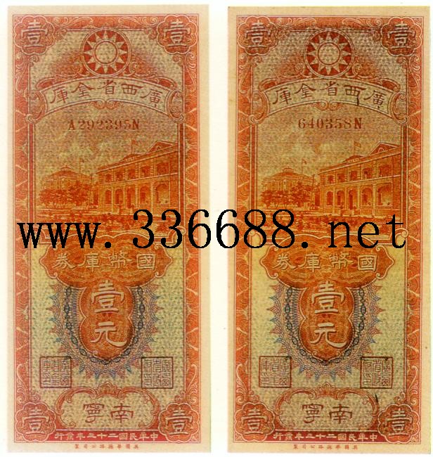 [组图]广西省银行民国23年(1934)国币金库券   1元         ★★★