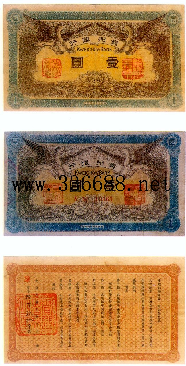 [图文]贵州银行民国元年(1912)   1元         ★★★