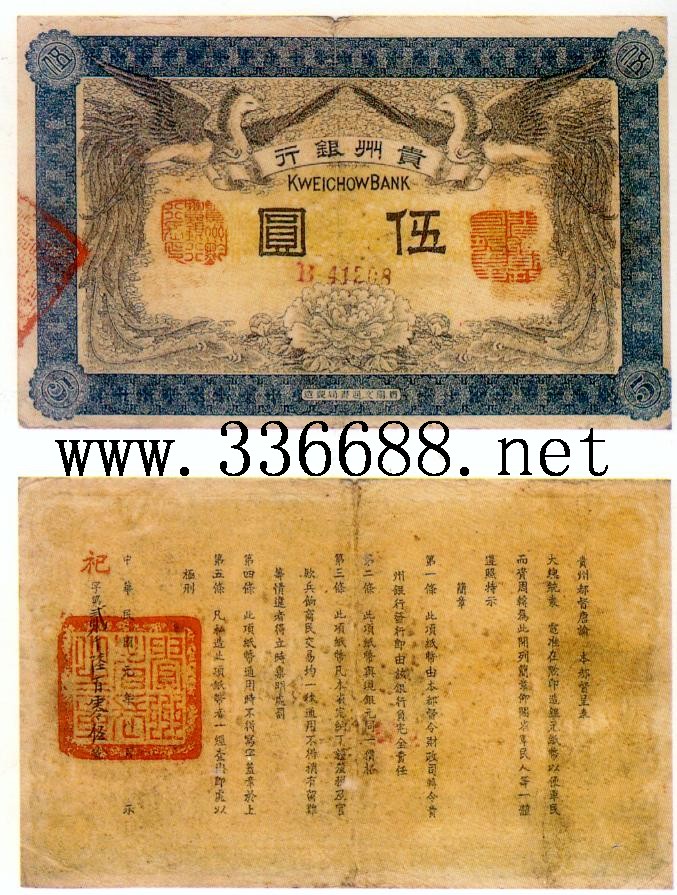 [图文]贵州银行民国元年(1912)   5元         ★★★