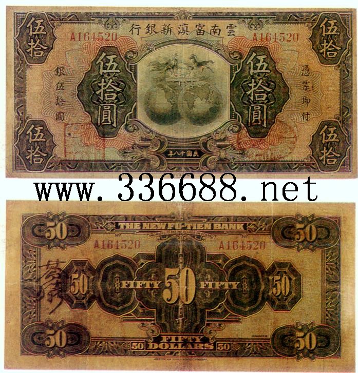 [图文]云南富滇新银行民国18年(1929)银元券   50元         ★★★